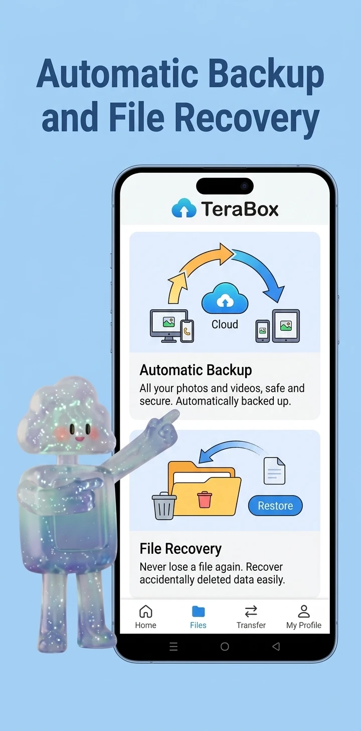 Yes. TeraBox supports automatic cloud backup for photos, videos and other files. Once backup is enabled, your data can be restored from any device connected to your account.